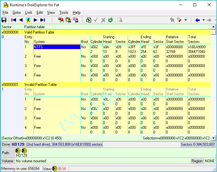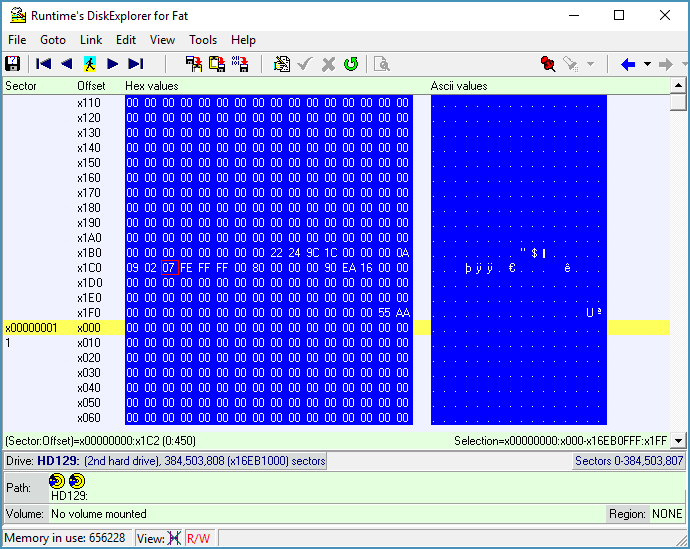 Una vez seleccionada la unidad, la pantalla tendrá el mismo aspecto que cuando abrió el programa por primera vez, pero ahora está viendo el primer sector de HD129.
