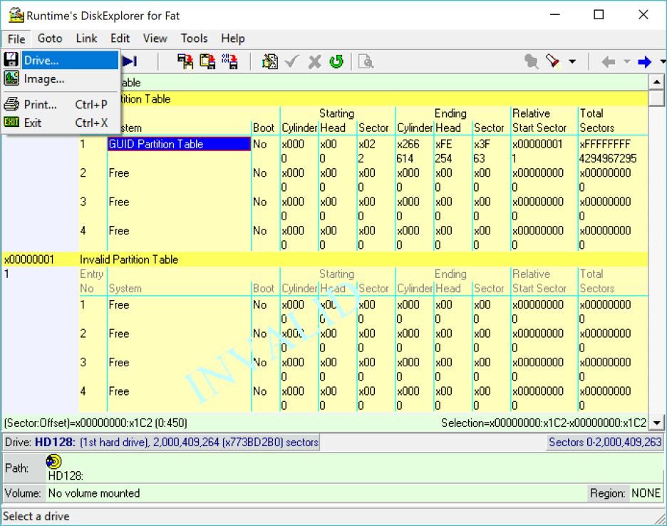 Coloque el cursor en el primer byte del primer sector (sector 0).