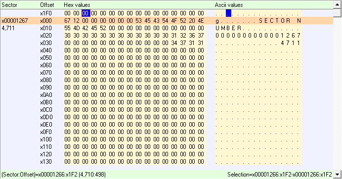 This creates a virtual 4 TB drive with numbered sector numbers. Look at how sector 4711 would look like: