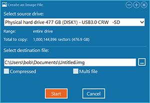 Make sure the target drive has sufficient space to hold the image file. Click Start to begin creating the image. Once you have created the image, you can use it in Runtime's data recovery products like a real drive. The imaging process counts the read errors it encounters. Make a note of that number, as well as the percentage of data read. The program fills unsuccessfully read sectors with 0's in the image.