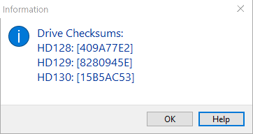 This utility shows you the checksums for currently open drives. This is helpful if you need to find out if the naming of your physical drives is still the same it was when you created a RaidProbe. Refer to the file raidinfo.txt that was created along with your RaidProbe.