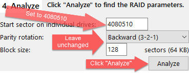 4. Analyze, we need to determine the start sector first, because a software RAID has one starting not at 0.